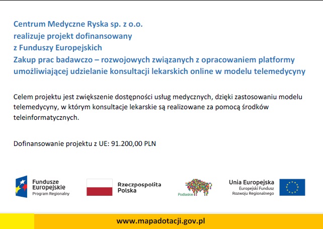 Mamy przyjemność poinformować, że Centrum Medyczne Ryska sp. o.o. pozyskało dofinansowanie na